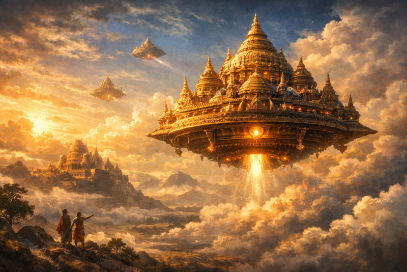 Ancient epics from different parts of the world often describe beings who arrive from above, glowing or radiant, possessing knowledge far beyond that of the people they meet. These visitors are rarely described as abstract spirits. They walk, speak, argue, eat, and leave physical marks on the world.